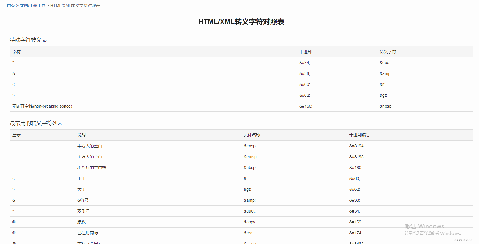 文档地址:HTML/XML转义字符对照表 - 我查139查询网