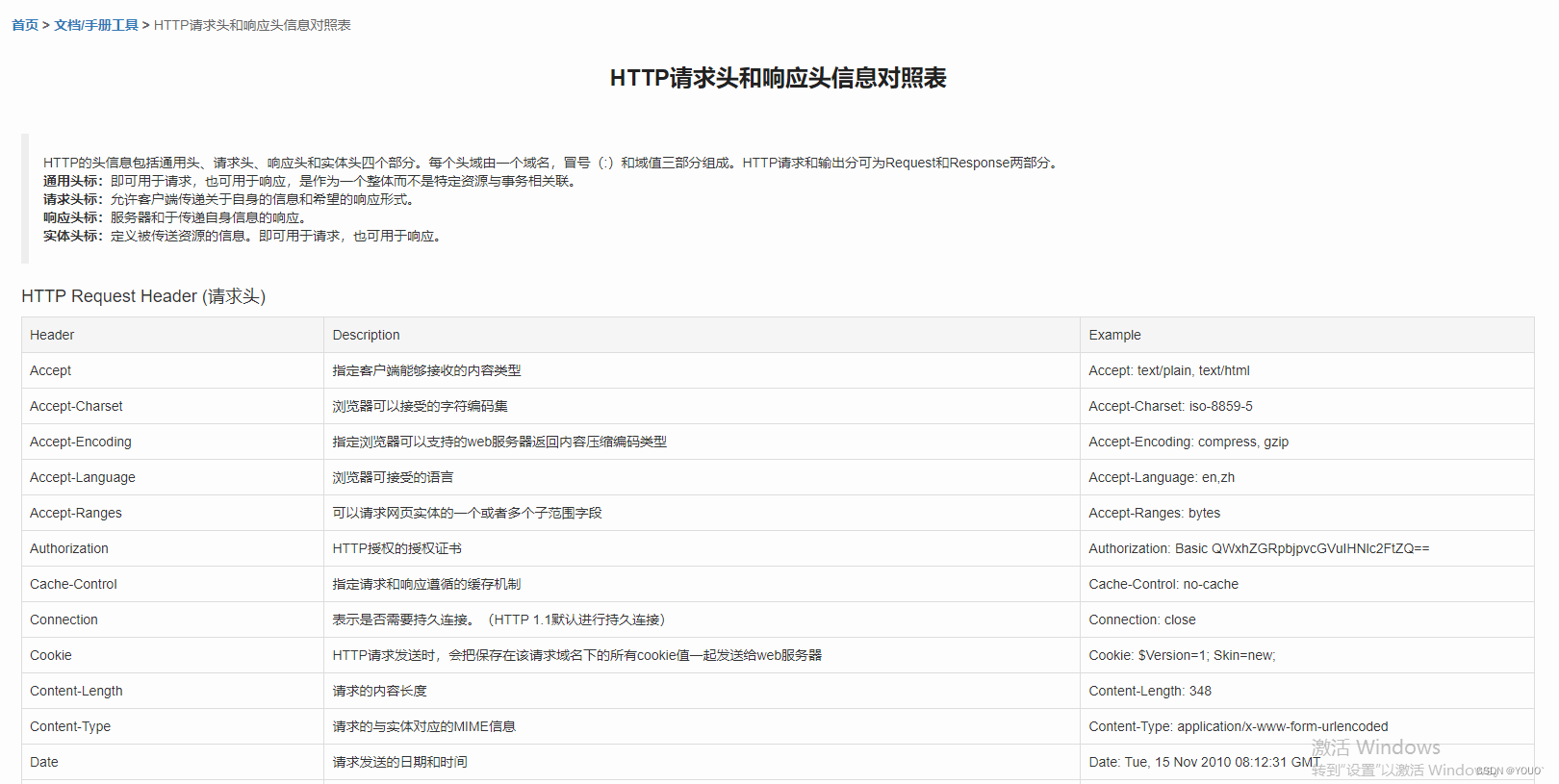 文档地址:HTTP请求头和响应头信息对照表 HTTP请求头Request和响应头Response信息 - 我查139查询网