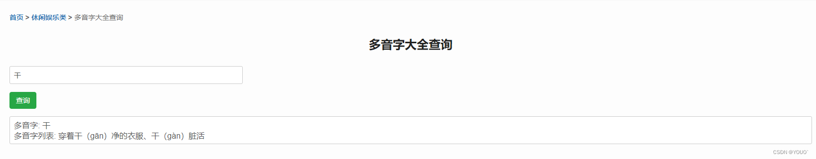 工具地址:多音字大全查询 - 我查139查询网 相关知识 多音字,是指一个字有两个或两个以上的读音,不同的读音表义不同,用法不同,词性也往往不同。读音有区别词性和词义的作用;根据使用情况不同,读音也不同,读音有区别用法的作用。