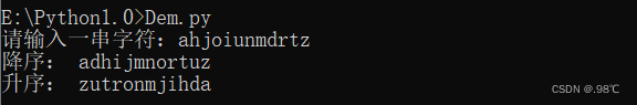 7. 接收用户输入的字符串,将其中的字符进行排序,并以逆序输出。例如:acdefb -abcdef-fedcba