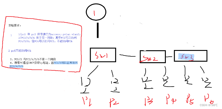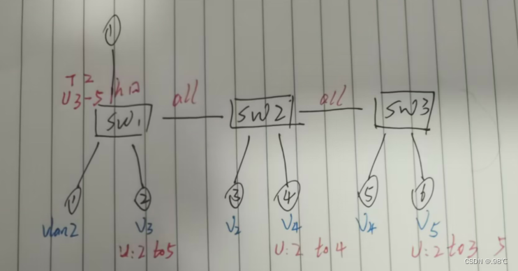 - 所有交换机上都要创建vlan 2 to 5