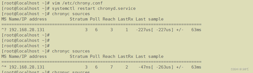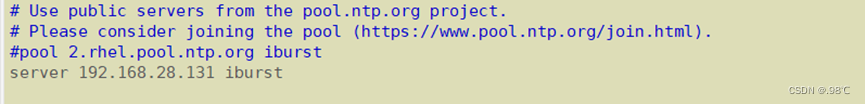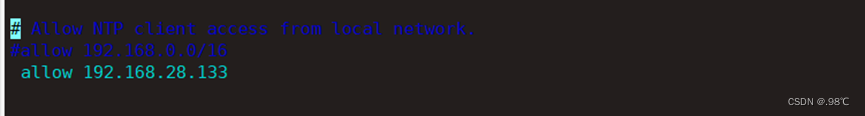 vim /etc/chrony.conf 进入配置文件,允许133来进行时间同步