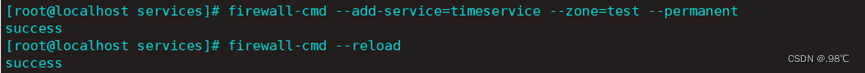 5、由于我们的网络接口接入到创建的test区中了,而服务默认为public区,所以需要将timeservice服务加入test区