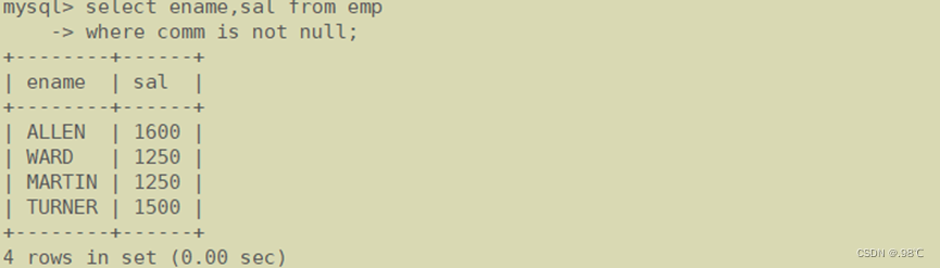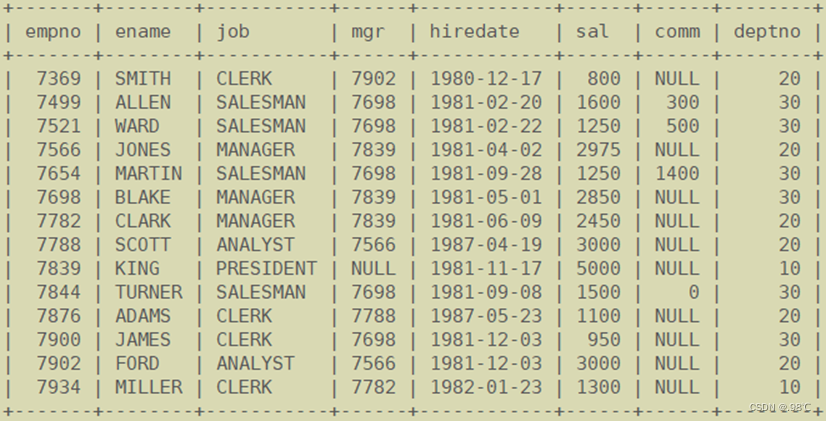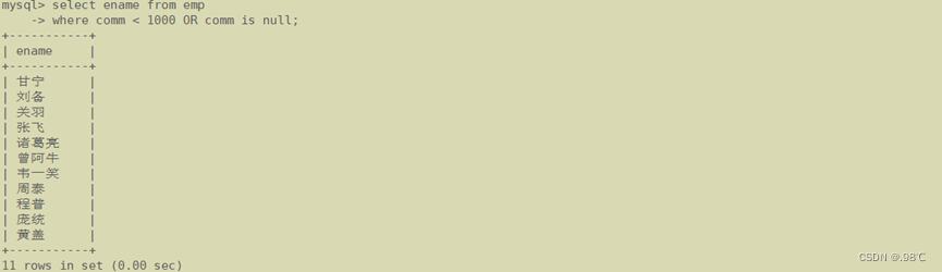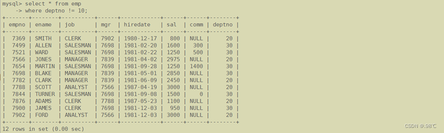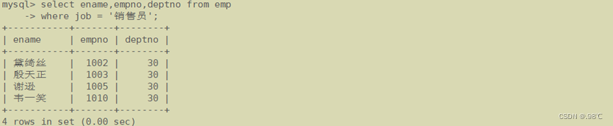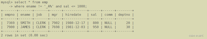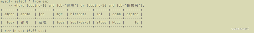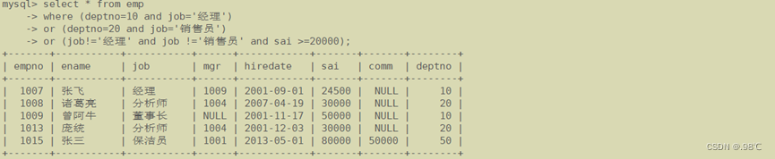 -> where (deptno=10 and job='经理') or (deptno=20 and job='销售员');
