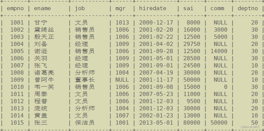-> or (job!='经理' and job !='销售员' and sai >=20000);