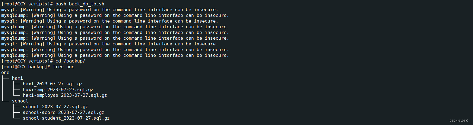 该脚本使用bash,通过嵌套循环实现MySQL数据库的全量备份以及每个表的单独备份。它首先获取所有非系统数据库,然后对每个数据库创建目录,接着执行mysqldump进行备份并压缩,同时为备份文件添加日期标签。备份完成后,清理中间文件。