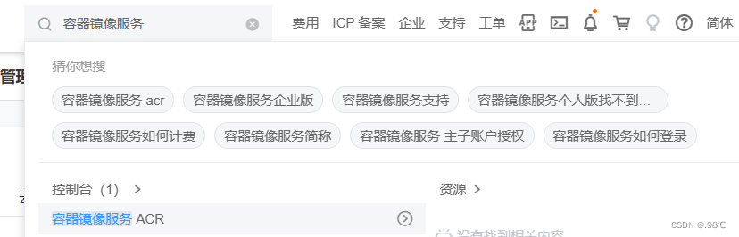 - 登录后选择:控制台 -> 搜索:容器镜像服务 -> 在最左列表中找到镜像加速,里面有详细讲解配置步骤方式。