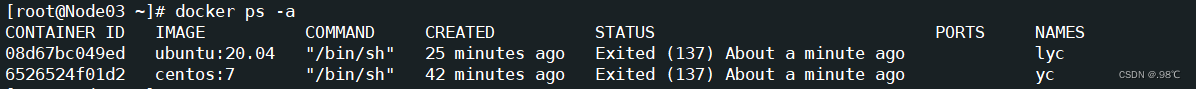 - 查看所有的容器-需要用到ps选项: