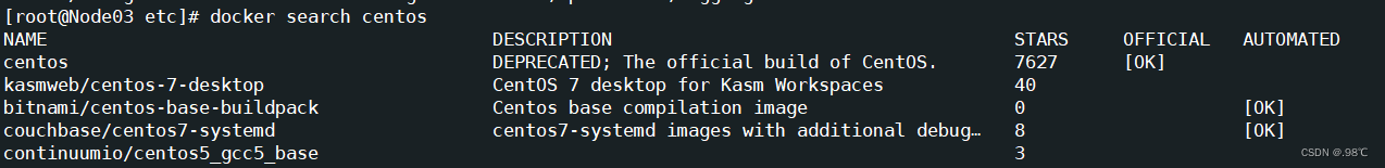 1)先查看我们所需的镜像有哪些版本。使用search命令!