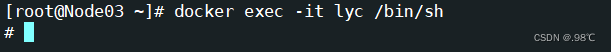 -t 打开容器终端;-i 交互式访问;/bin/sh 进入容器必须要的解释器(shell)