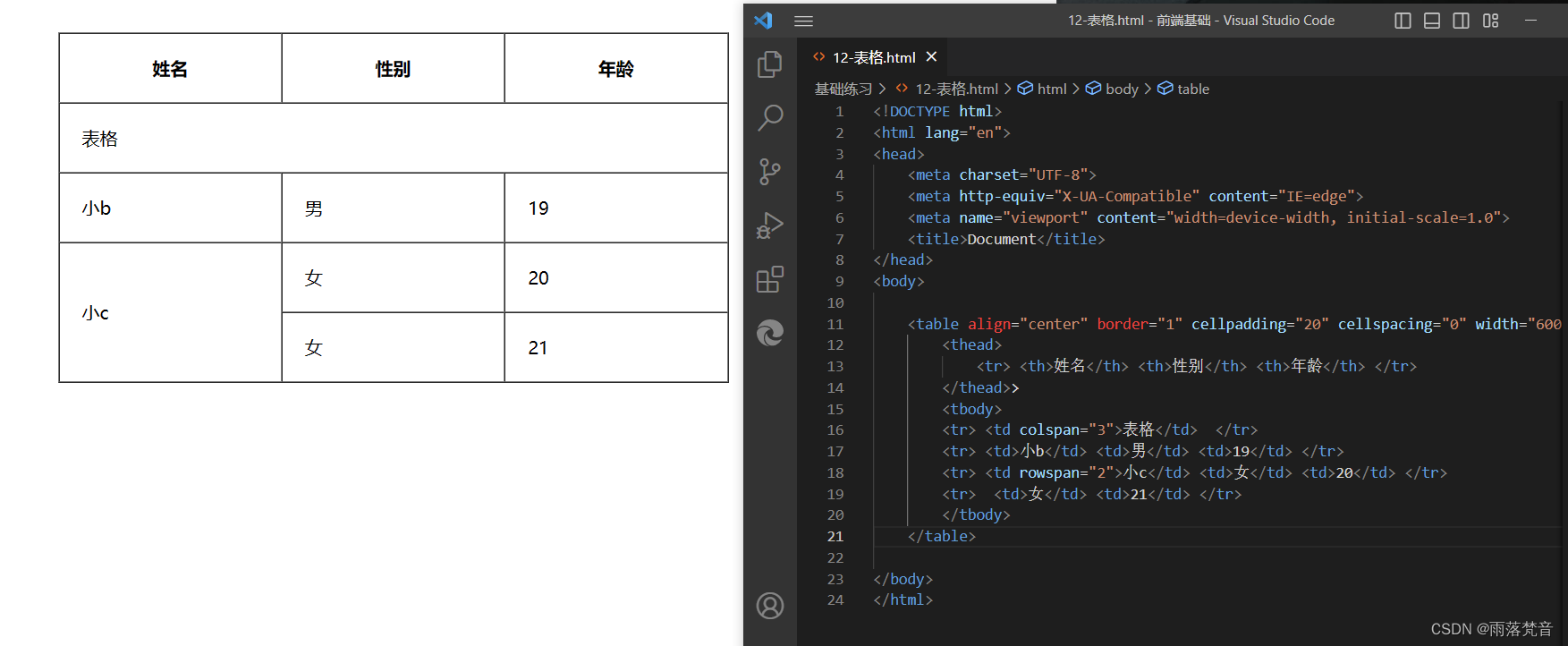 - 找到目标单元格,写上合并方式 = 合并的单元格数量。比如:<td colspan="2"></td>