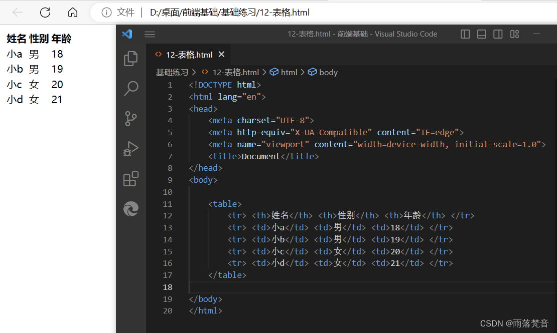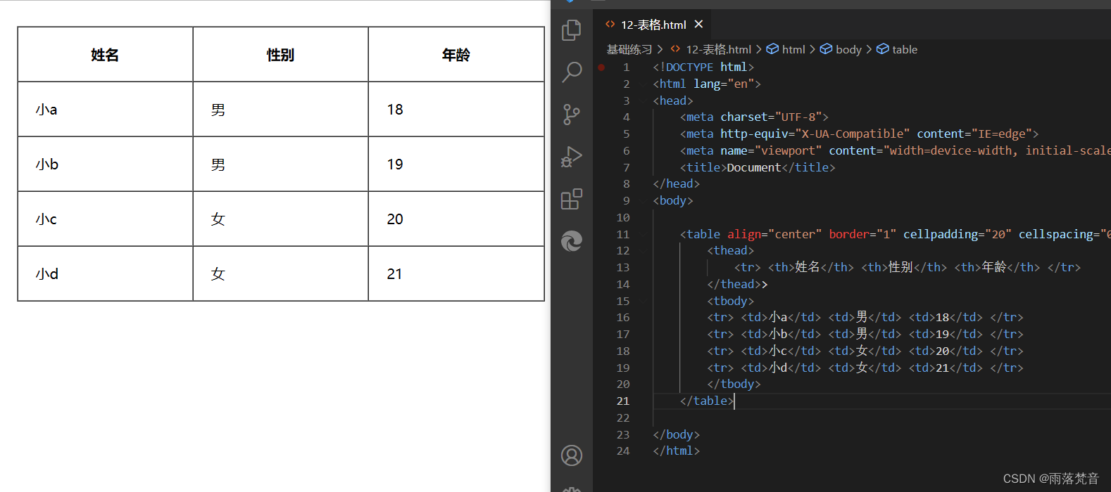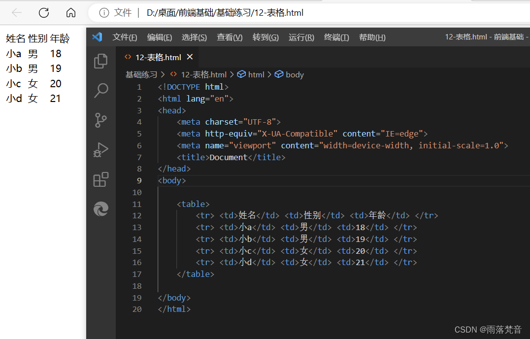 - <tbody></tbody>:用于定义表格的主体,主要用于放数据本体。