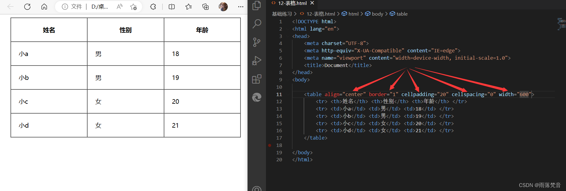 其中,表格标签能够让我们按表格的样式来展示数据,表格的相关属性可以让我们调整表格的边框和其他样式(这个后面主要是CSS的内容),合并单元格就是将单元格合并,要掌握合并操作的步骤。其实就是这点东西,没啥。