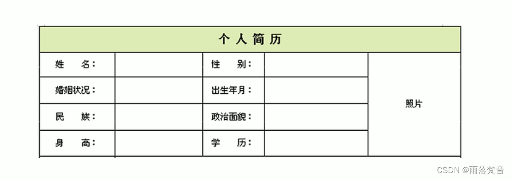 如上图所示:我们就需要把“照片”和“个人简历”这些单元格进行合并