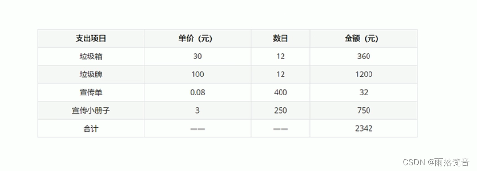 小结:表头单元格也是单元格,常用于表格第一行,突出重要性,表头单元格里面的文字会加粗居中显示。