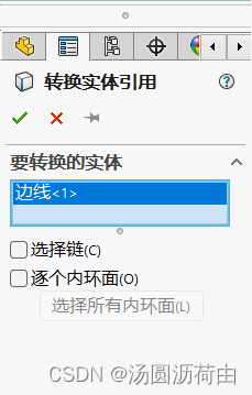 用途:给几何中已有的线提取到正在绘制的草图中,即将所选边线和草图实体转换为相同实体,方法是将其投影到草图平面或面上。