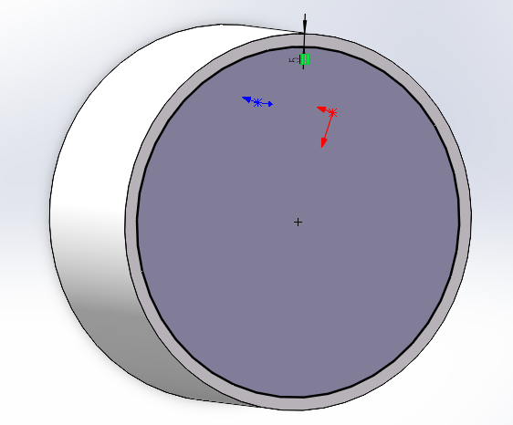 - 长摁鼠标中键的滚轮并拖动可以调整圆柱体展示--将显示类型修改为线架图(圆柱的边线为细实线,草图的线为粗实线)--将显示类型修改为带边线上色并删除所绘制的粗圆;
