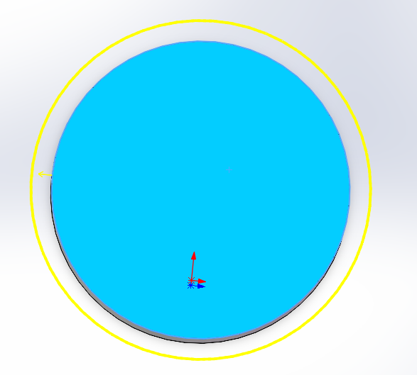 - 将2.2中转换实体引用的圆删除--选中圆柱的顶面--点击等距实体按钮(出现黄色预览圆,如图25所示,其属性图如图26所示)--将距离改为5以及选择反向,可获得由边线向内等距5mm的圆,如图27所示。