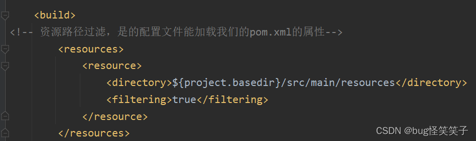 <3>加一个资源过滤的配置,是的配置文件可以加载我们的pom的属性。