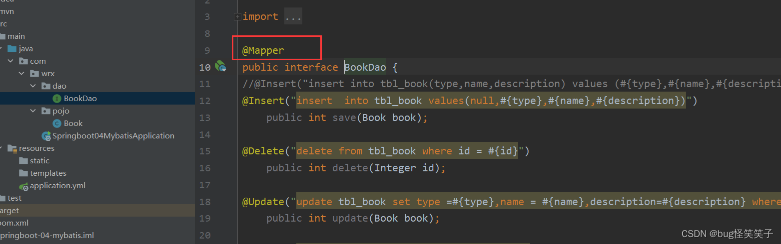 和mybatis不同的是,我们的dao不用写了,我们让我们的接口继承一个类BaseMapper<T>