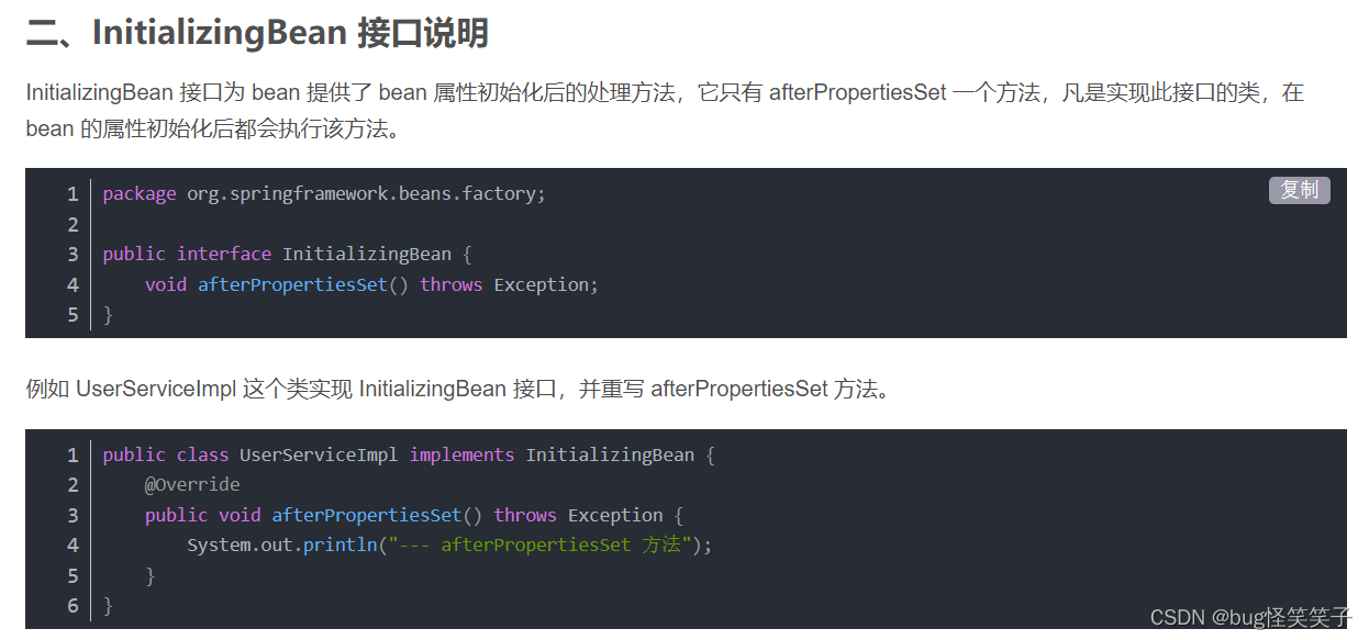 5.判断是否实现initializingBean接口,如果有,就调用afterProperties方法没有就不调用。