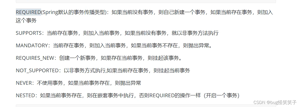 3.SUPPORT(A怎样B怎样):A有事务,B就加入,A没有事务,就按非事务执行。