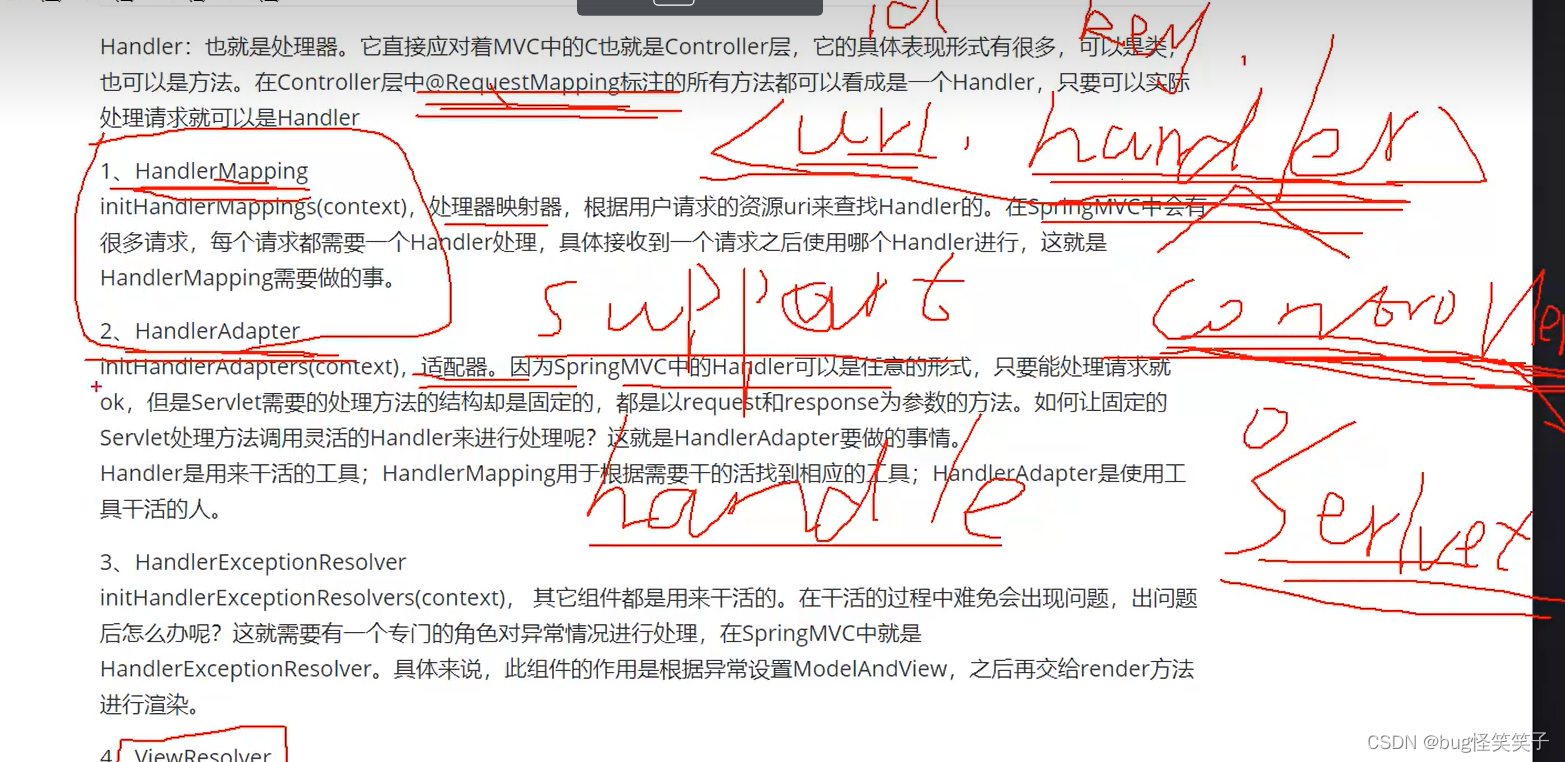 3.HndleMapping根据用户发来请求的Url,找到对应的handler处理器,生成处理器和处理器拦截器返回给DispatcherServlet。