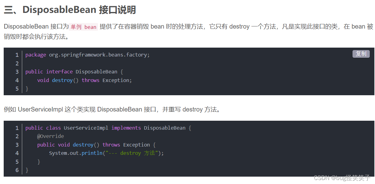 9.销毁:1;判断是否实现了DispoableBean来判断是否为单例bean