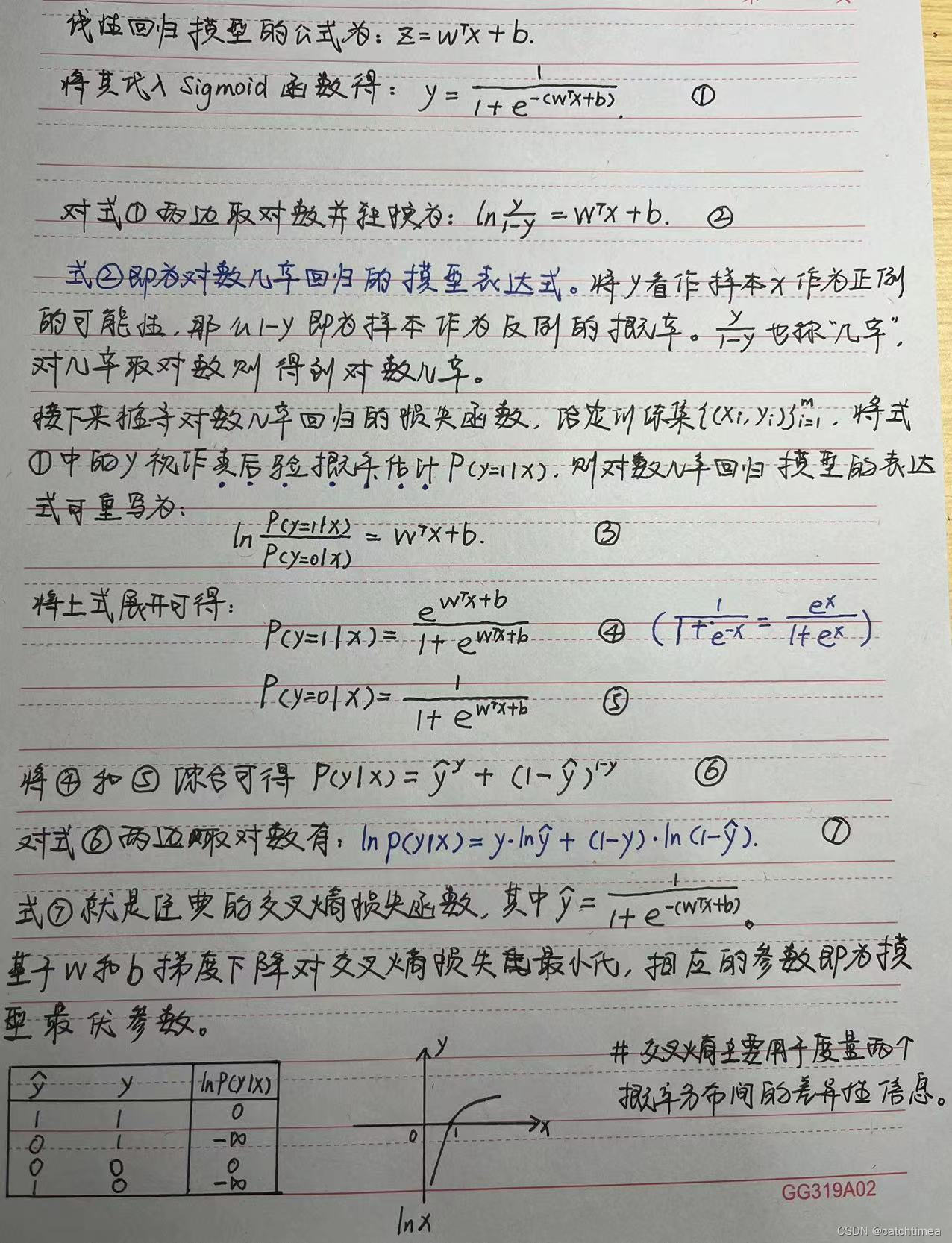 线性模型如何执行分类任务呢?只需要找到一个单调可微函数将分类任务的真实标签y与线性回归模型的预测值进行映射。在线性回归中,我们直接令模型学习逼近真实标签y,但在对数几率回归中,我们需要找到一个映射函数将线性回归的预测值转化为0/1值。