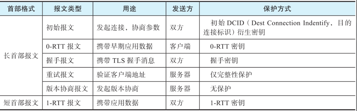 - 一类是短首部报文,用于在QUIC连接建立后发送应用数据和QUIC协议内容