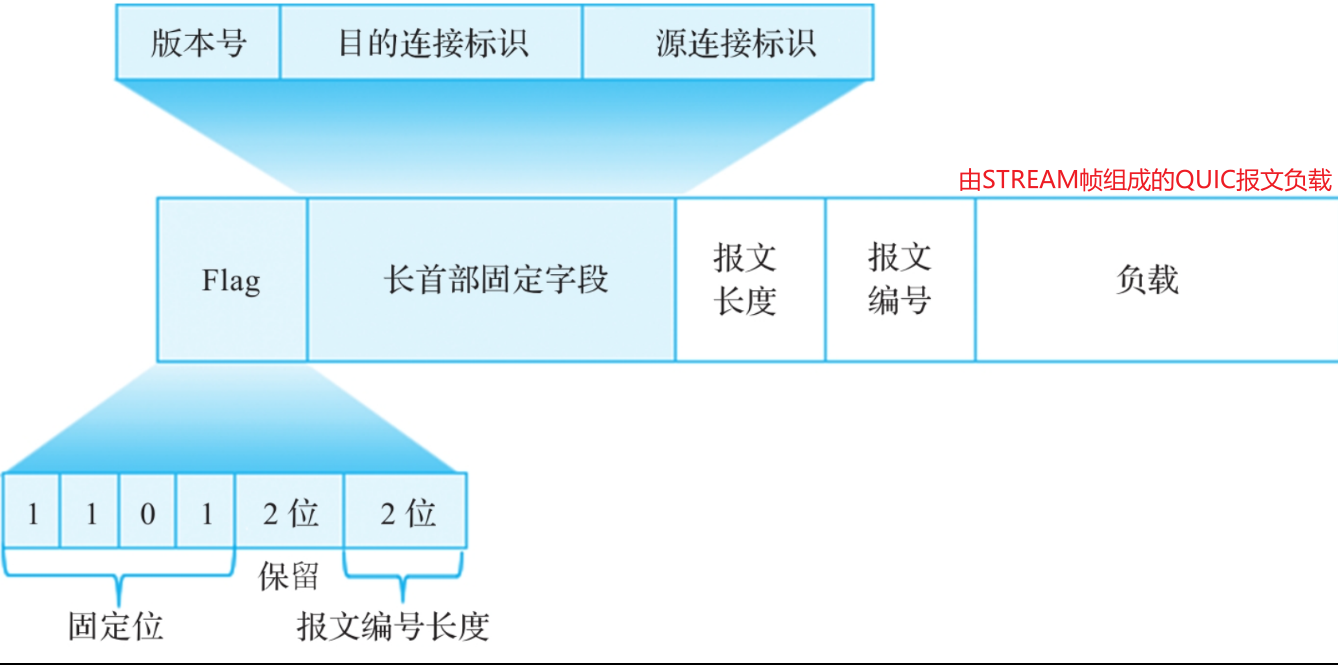 - 一类是长首部报文,用于建立QUIC连接和建立连接前发送应用数据;