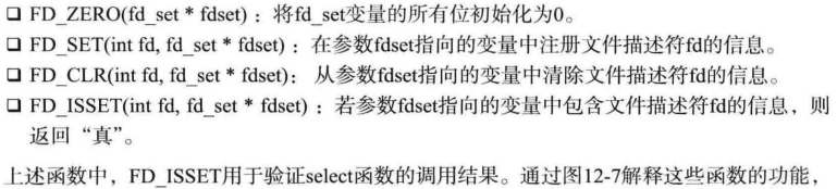 - 在fd-set变量中注册或更改值的操作都由下列宏完: