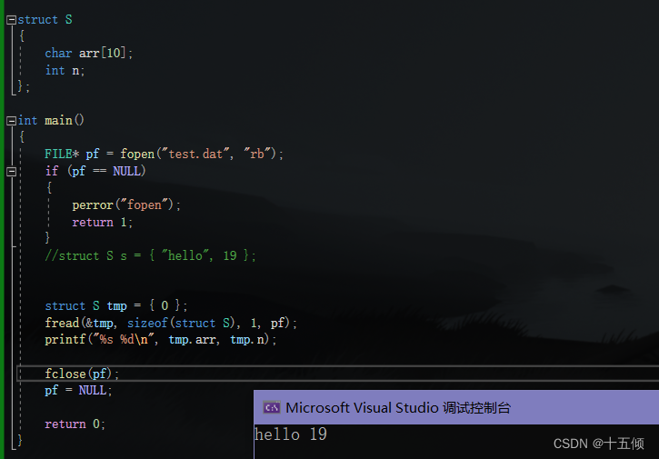 使用fread将上一步存入文件中的数据输入到内存中并使用printf输出进行观察: