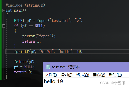 可见fprintf按照指定的格式顺序将对应类型的数据输出到了指定的文件中。