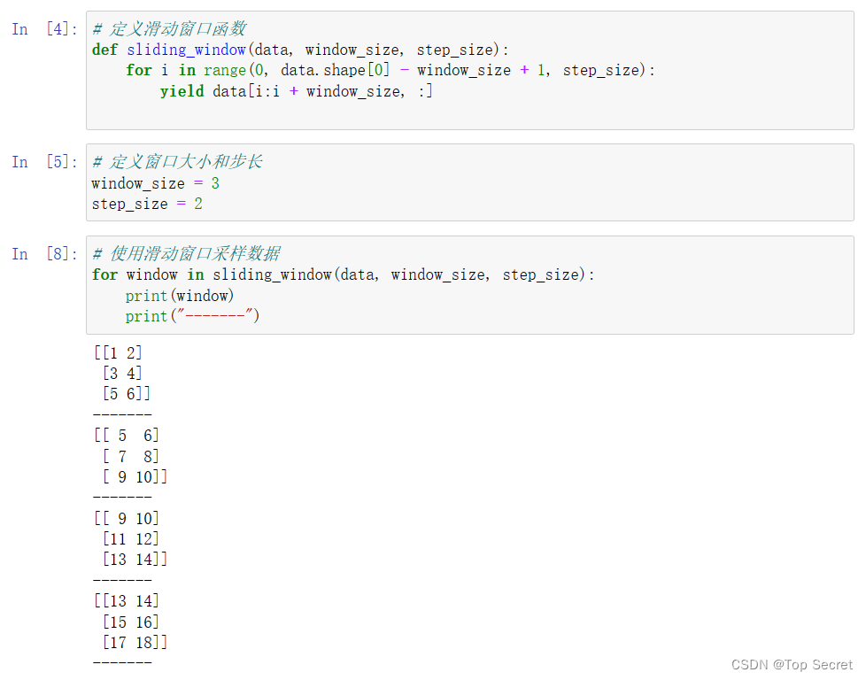# data: 这是要应用滑动窗口采样的输入数据,通常是一个序列,例如列表或NumPy数组。