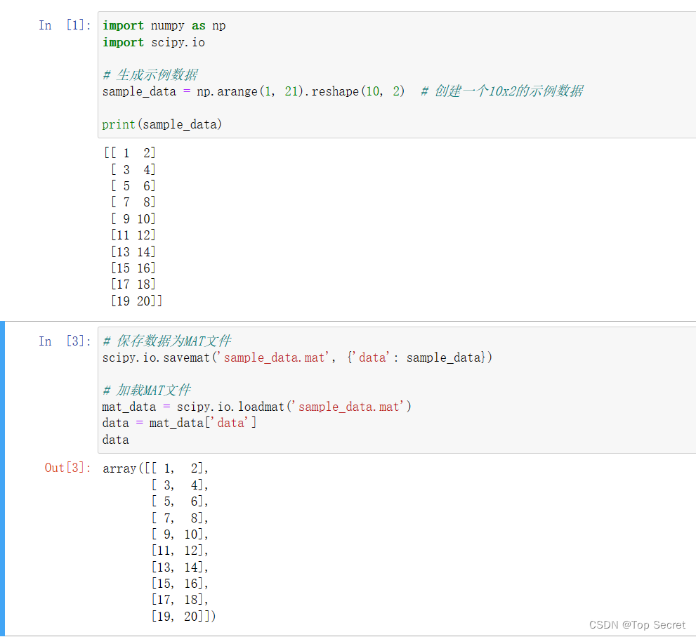 sample_data = np.arange(1, 21).reshape(10, 2) # 创建一个10x2的示例数据