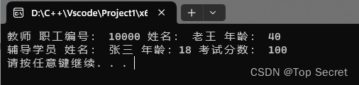 cout << "辅导学员 姓名: " << t1.stu.name << " 年龄:" << t1.stu.age << " 考试分数: " << t1.stu.score << endl;
