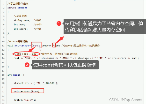 void printStudent(const student* stu) //加const防止函数体中的误操作