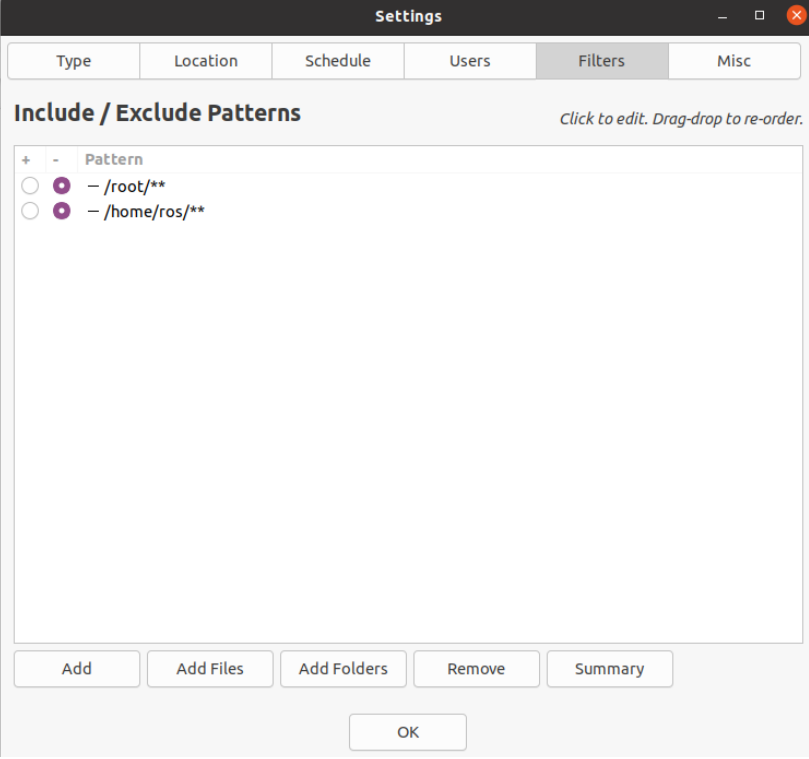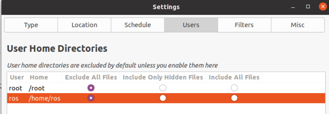 “Include Only Hidden Files(仅包含隐藏文件)”:备份应用程序设置、桌面环境配置、浏览器配置文件等,对磁盘要求适中,比”Exclude All Files”要求空间更大一点,但比 “Include All Files”要求空间小得多。
