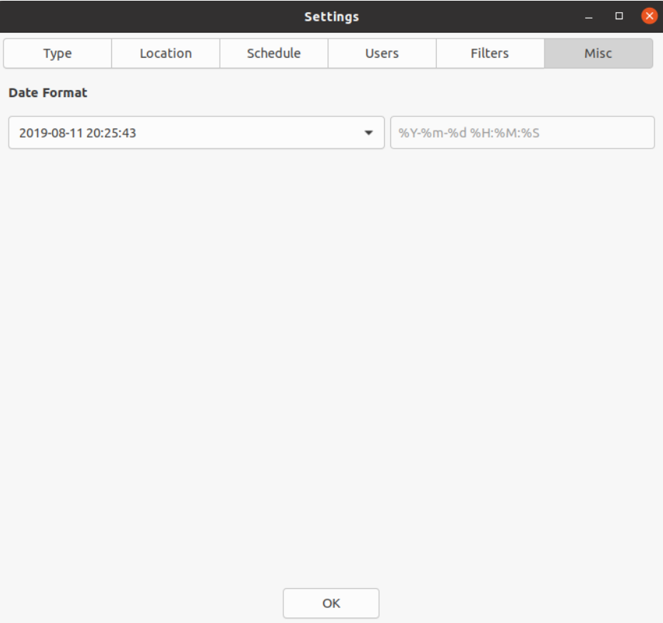 日期格式,保持默认即可,不需要修改,最后点击OK保存设置。(2019-08-11 20:25:43是效果示例)。