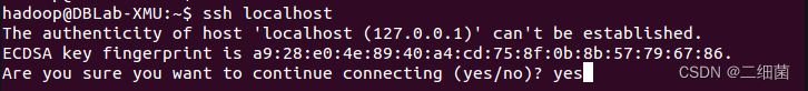 此时会有如下提示(SSH首次登陆提示),输入 yes 。然后按提示输入密码,这样就登陆到本机了。
