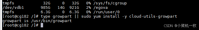 4、检查系统中是否安装了 growpart 工具 ,如果没有安装将自动安装 type growpart || sudo yum install -y cloud-utils-growpart (检查已经安装)