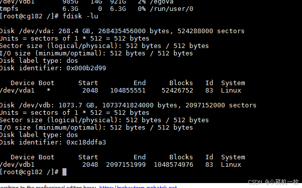 2、查看磁盘分区信息的命令 fdisk -lu