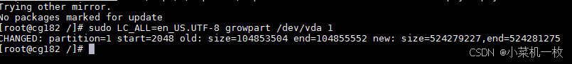 6、扩展磁盘分区的命令 sudo LC_ALL=en_US.UTF-8 growpart /dev/vda 1
