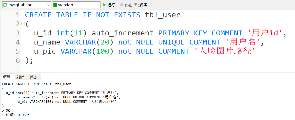 u_pic VARCHAR(100) not NULL COMMENT '人脸图片路径'