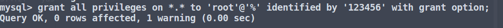 grant all privileges on *.* to 'root'@'%' identified by '123456' with grant option;