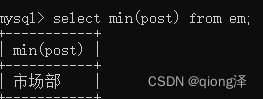 使用min()函数。我们不难发现post一列中是字符型数据,那么max和min也可以操作字符数据,是按照ASCII码大小比较的。
