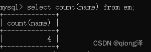 使用count()函数。name字段这一列共有四行,所以结果为4。