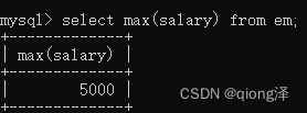 使用max()函数。从salary字段一列中筛选出最大薪资。为5000。
