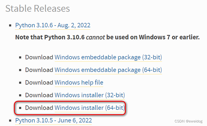 2. Windows选择下面版本,下载到本地电脑右键管理员方式安装